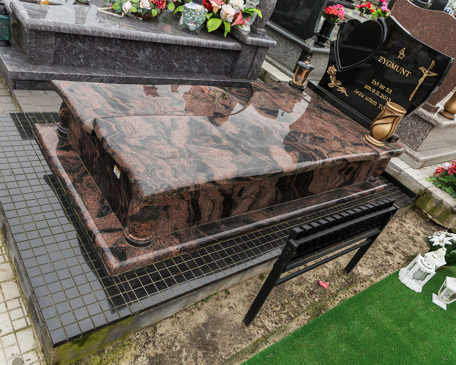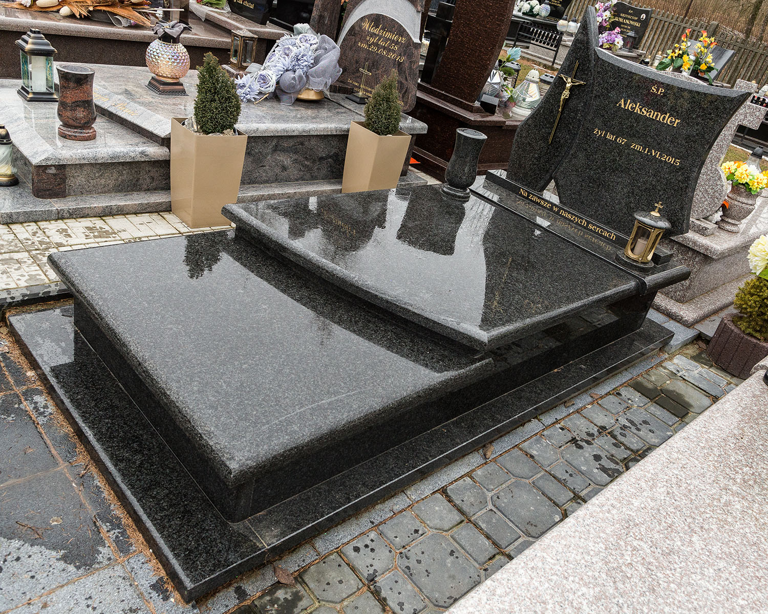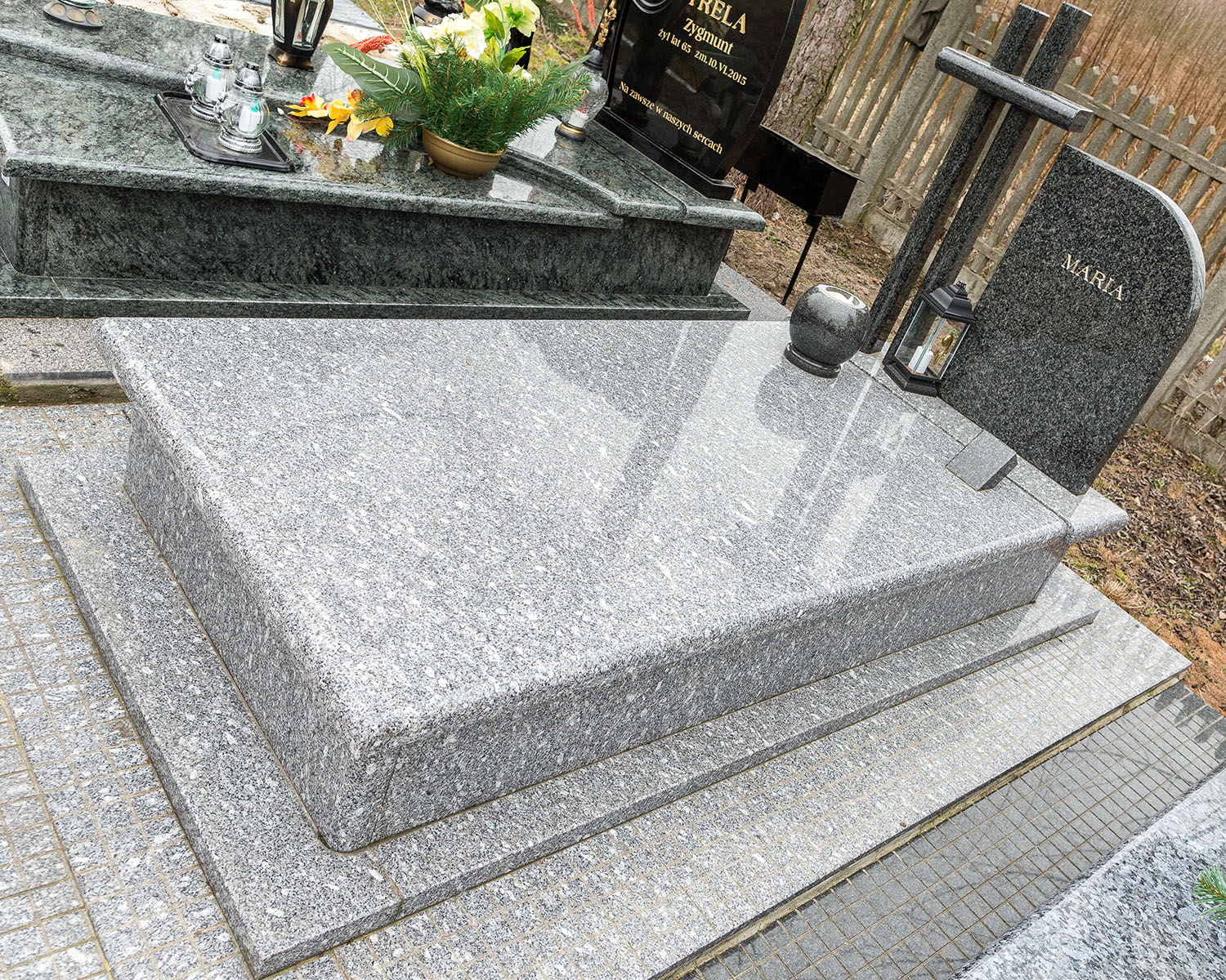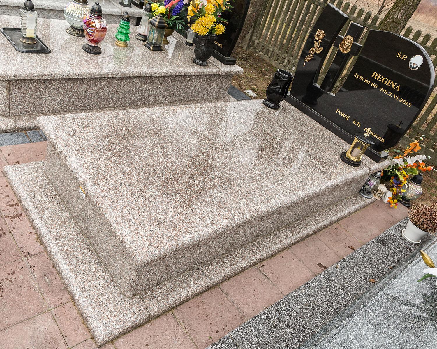 - nagrobki z różnych rodzajów granitów